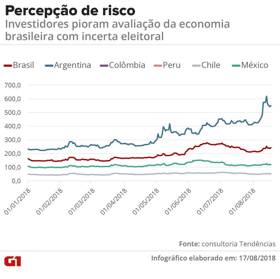 Com incerteza eleitoral, risco-país do Brasil é o 2º que mais cresce na América Latina